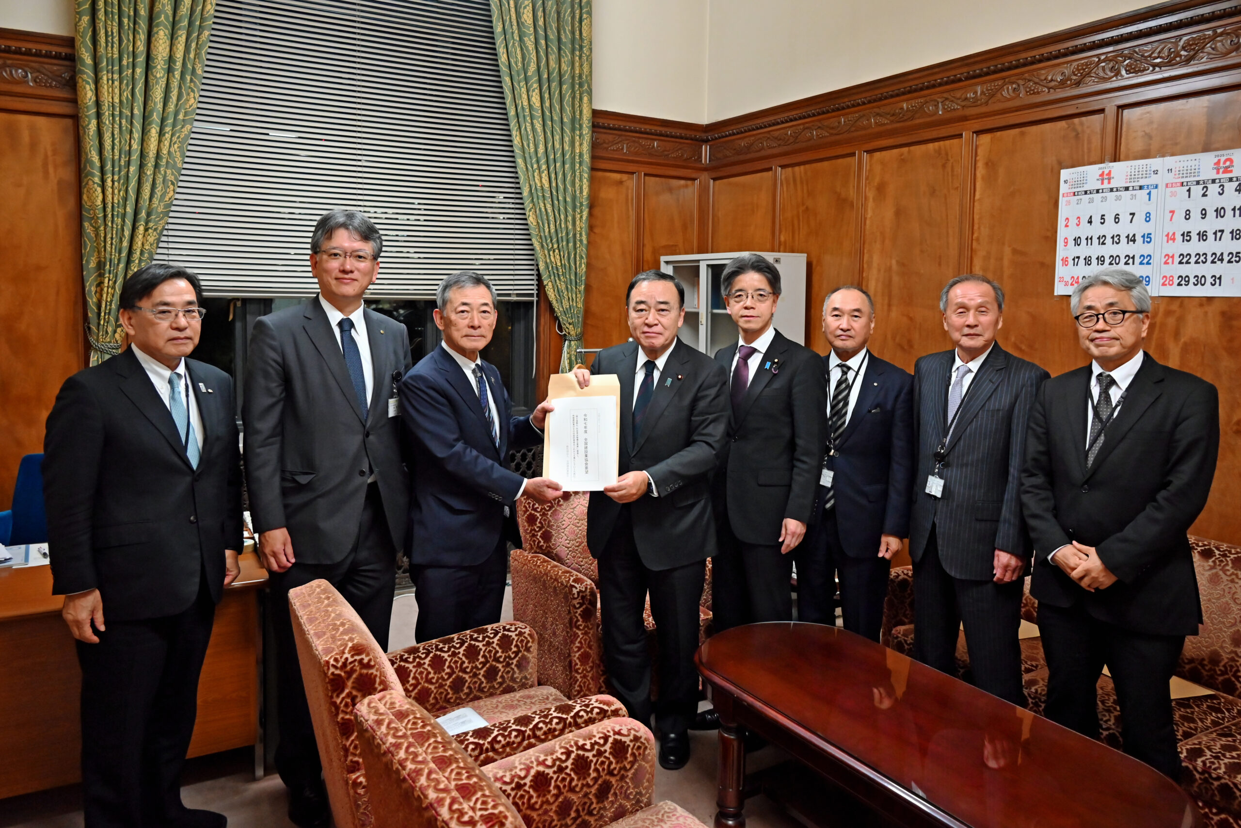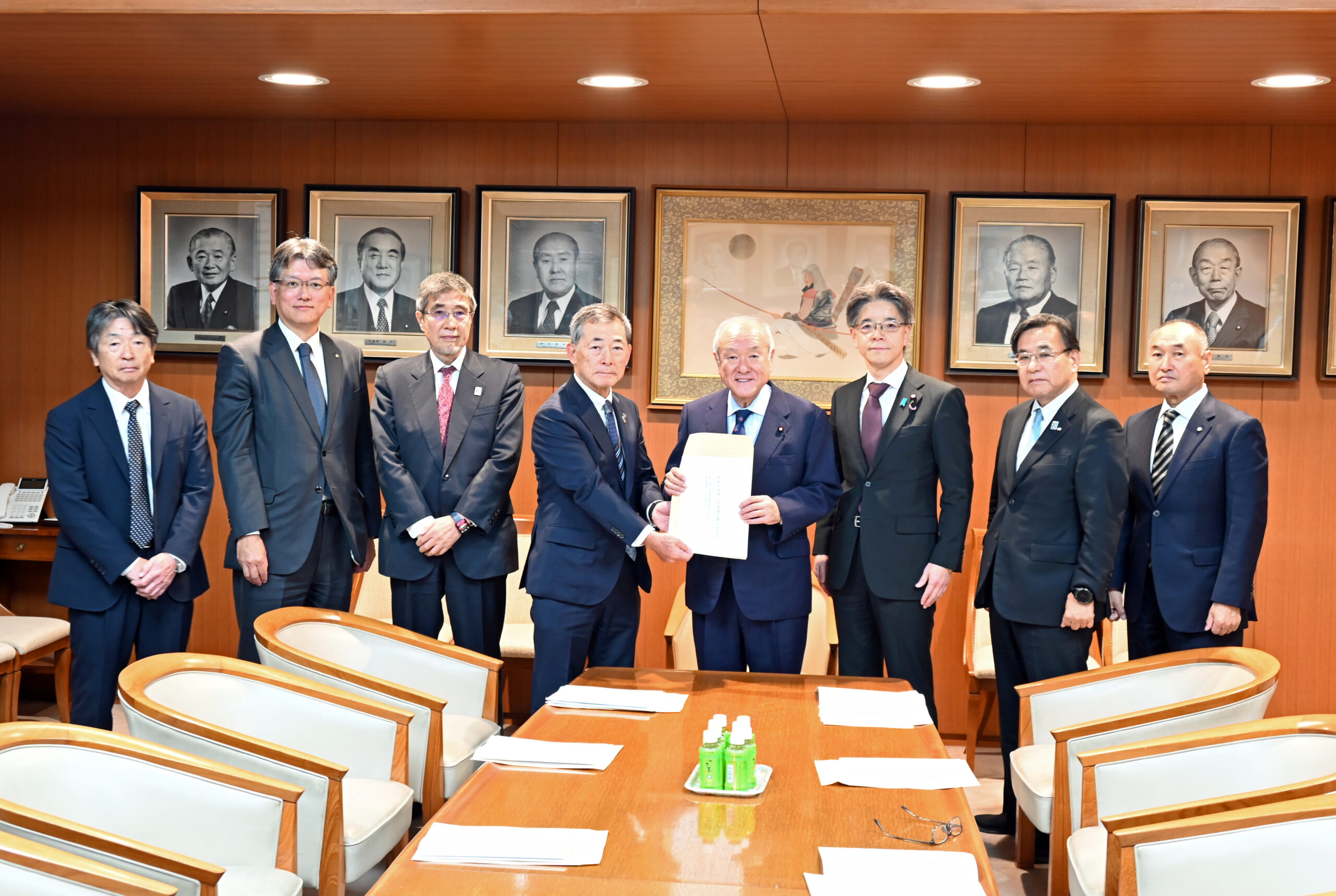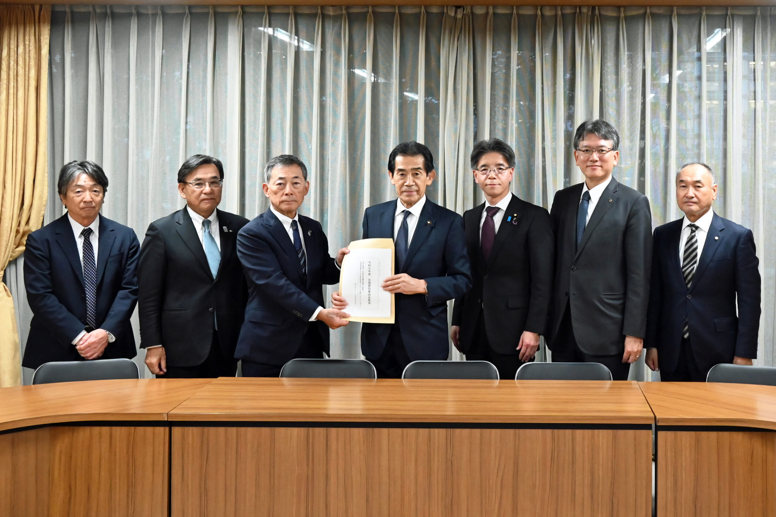 本会では、本年10月に全国9ブロックにおいて、地域懇談会・ブロック会議を開催し、各ブロックで出された意見・要望を「令和7年度 全国建設業協会要望【国土強靭化・社会資本整備を着実に推進し、地域建設業がその社会的使命をこれからも果たしていくために】」と題する要望書として取りまとめ、11月18日に今井、錢高、千葉、石井、西村の正副会長等と事務局役員が国土交通省及び自由民主党を訪問し、地域建設業が直面する喫緊の課題等について 要望活動を行ないました。また、各要望活動には見坂茂範参議院議員にご同行いただきました。